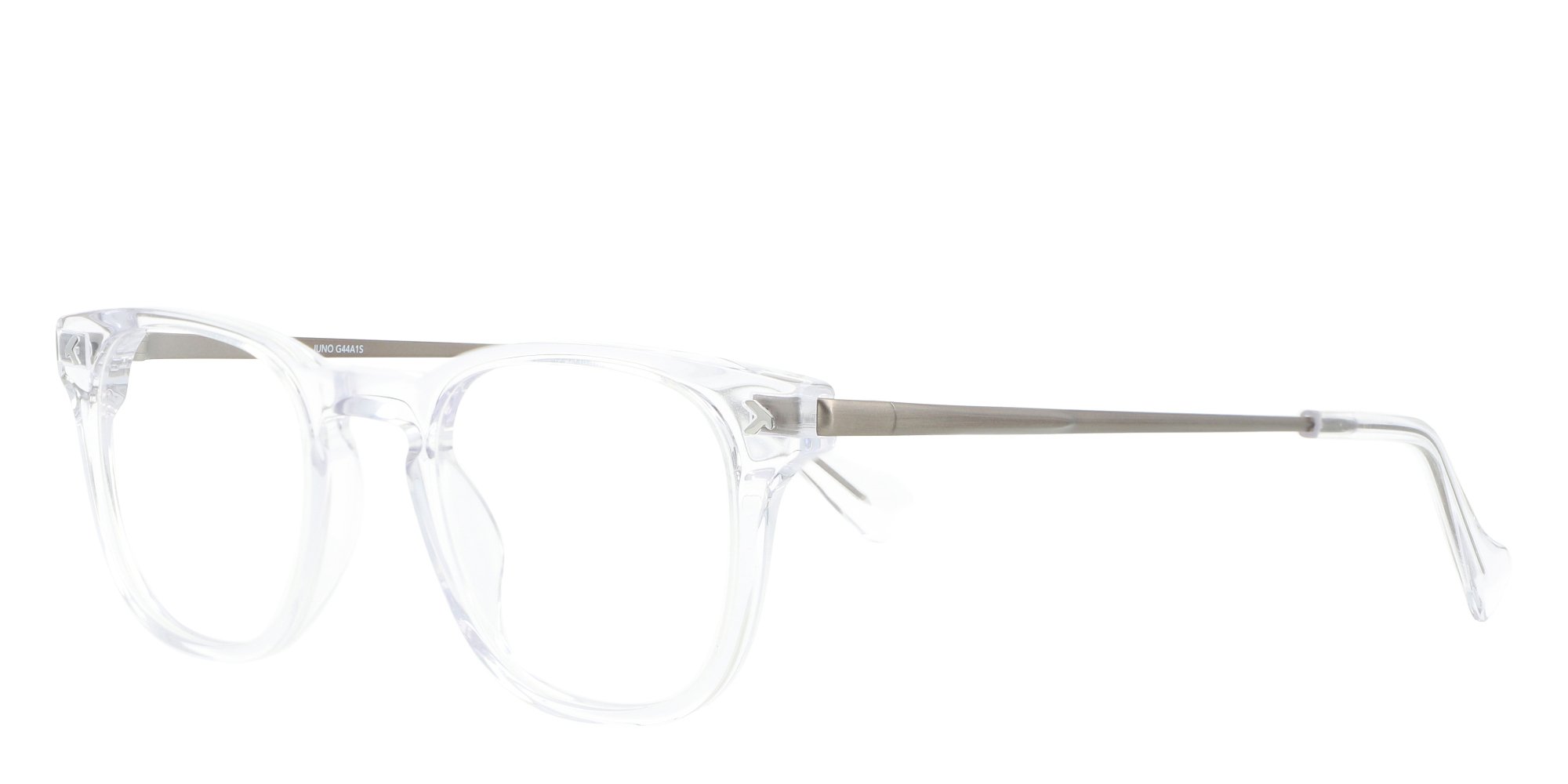 Classic frame shape in a hybrid construction combining metal and lightweight acetate, with a keyhole nose bridge detail.