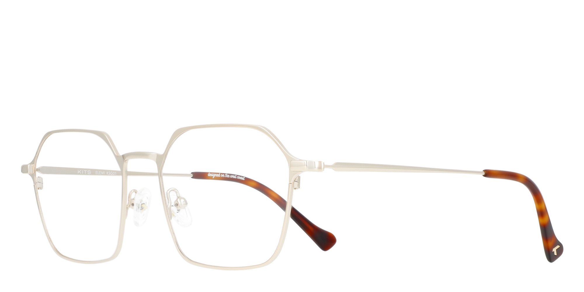 Geometric metal eyeglasses.